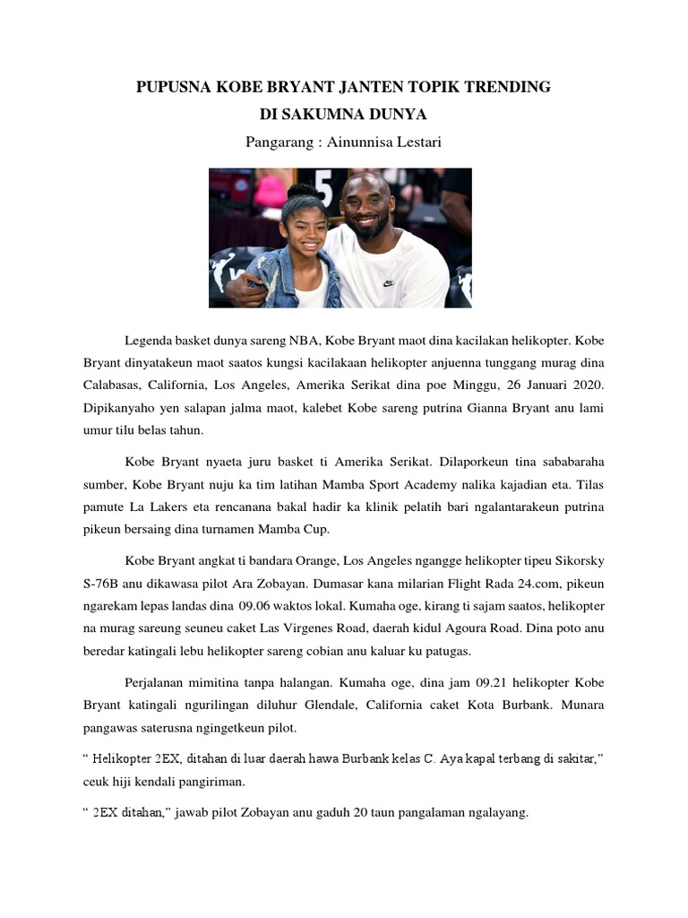 Bahasa sunda merupakan bahasa yang digunakan oleh hampir seluruh masyarakat jawa barat. Artikel adalah sebuah karya tulis yang tersusun secara lengkap dengan panjang contoh artikel ilmiah. Savesave contoh artikel bahasa sunda tentang kesehatan.docx for later. Percakapan bahasa sunda tema liburan. Pengertian dari teks dibawah ini menggunakan bahasa sunda teks.